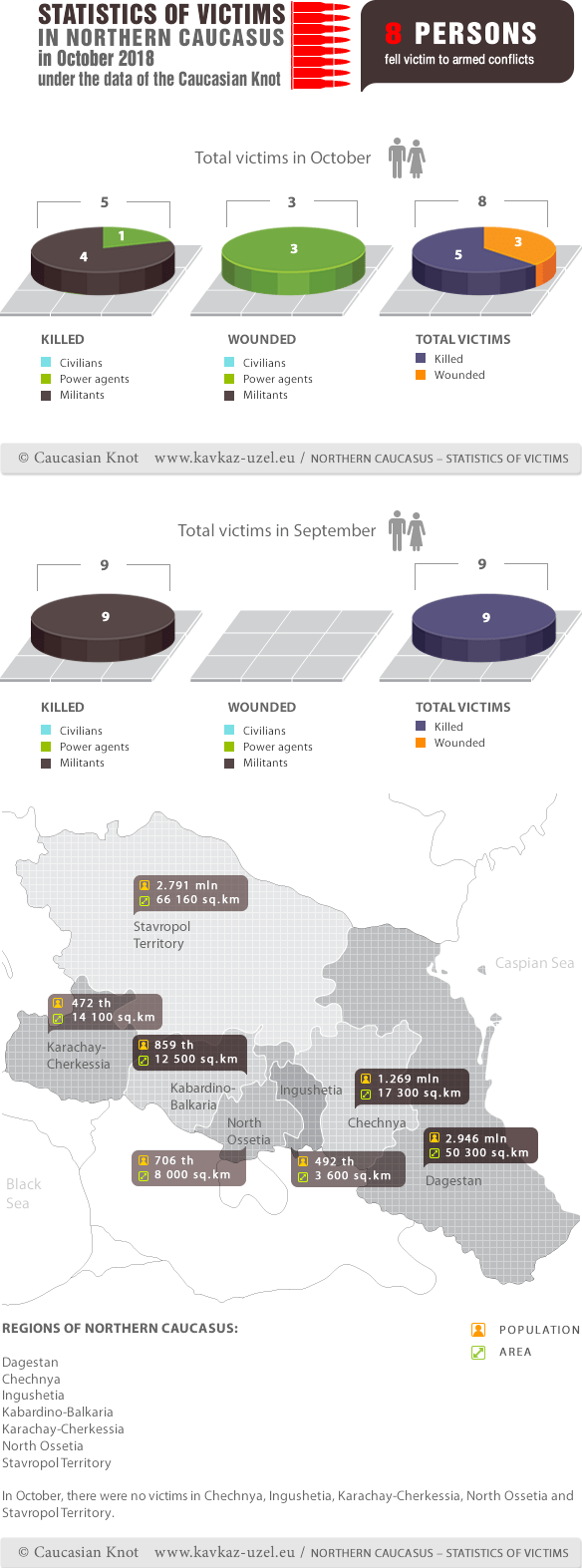 Infographics. Statistics of victims in Northern Caucasus in October 2018 under the data of the Caucasian Knot