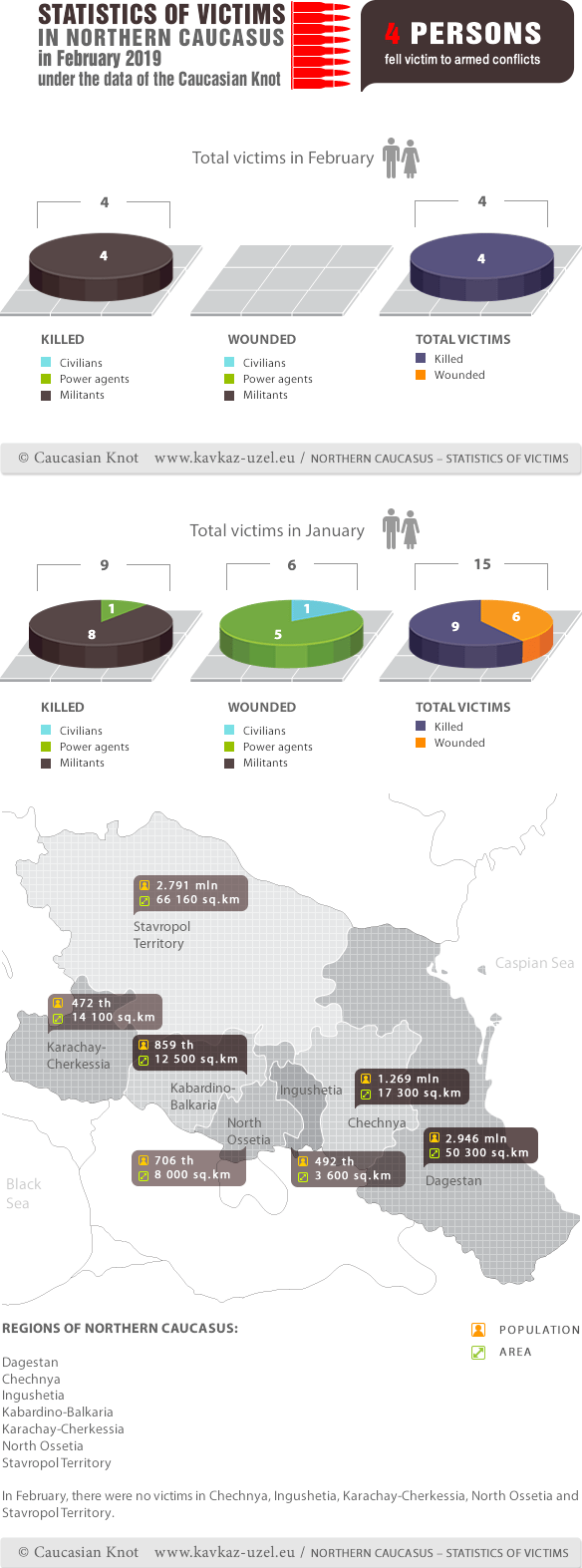 Infographics. Statistics of victims in Northern Caucasus in Febrary 2019 under the data of the Caucasian Knot