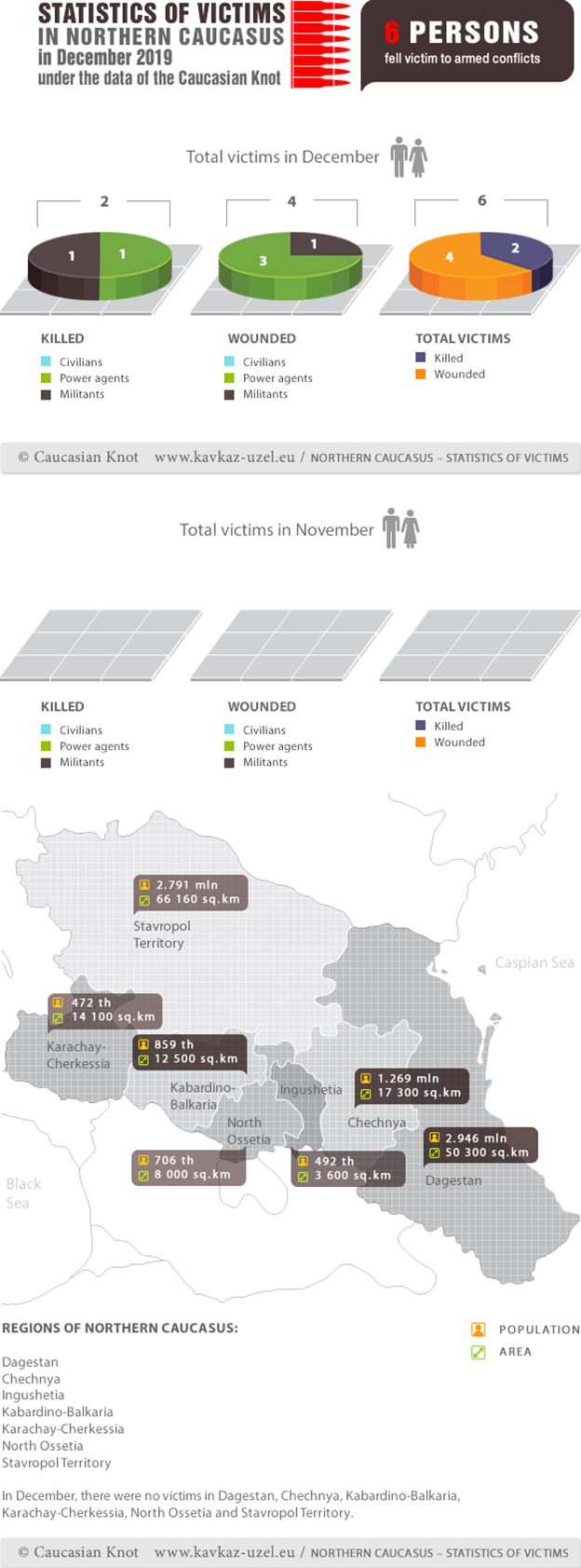 Infographics. Statistics of victims in Northern Caucasus in December 2019 under the data of Caucasian Knot