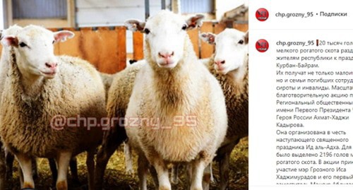 The Foundation has allocated 20,000 heads of small livestock for the poor residents of Chechnya and families of perished law enforcers, so that they could perform the traditional sacrifice ritual on Eid al-Adha, the "Grozny" TV Channel reported. A source from the clergy of the Gudermes District said that "the alms will reach everyone in need."