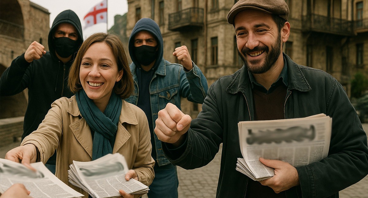 “We were distributing newspapers with letters from prisoners, but several provocateurs started cursing at us. Then the police came and intervened in the situation. A young woman was hit on the head for defending her Georgian identity,” the “Pirveli” TV Channel quotes a participant of the action as claiming.