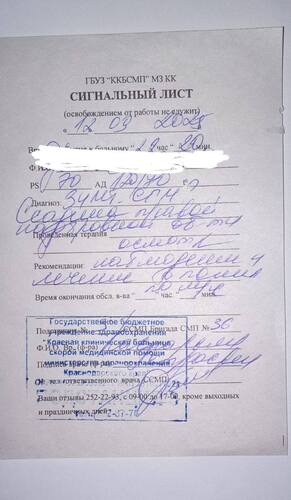 The publication is illustrated with a medical document with the seal of the regional emergency hospital. The document is dated 22.20 (Moscow time) on September 12, the patient's name on the published photocopy is retouched. The "diagnosis" column indicates "abrasion of the right brow ridge."