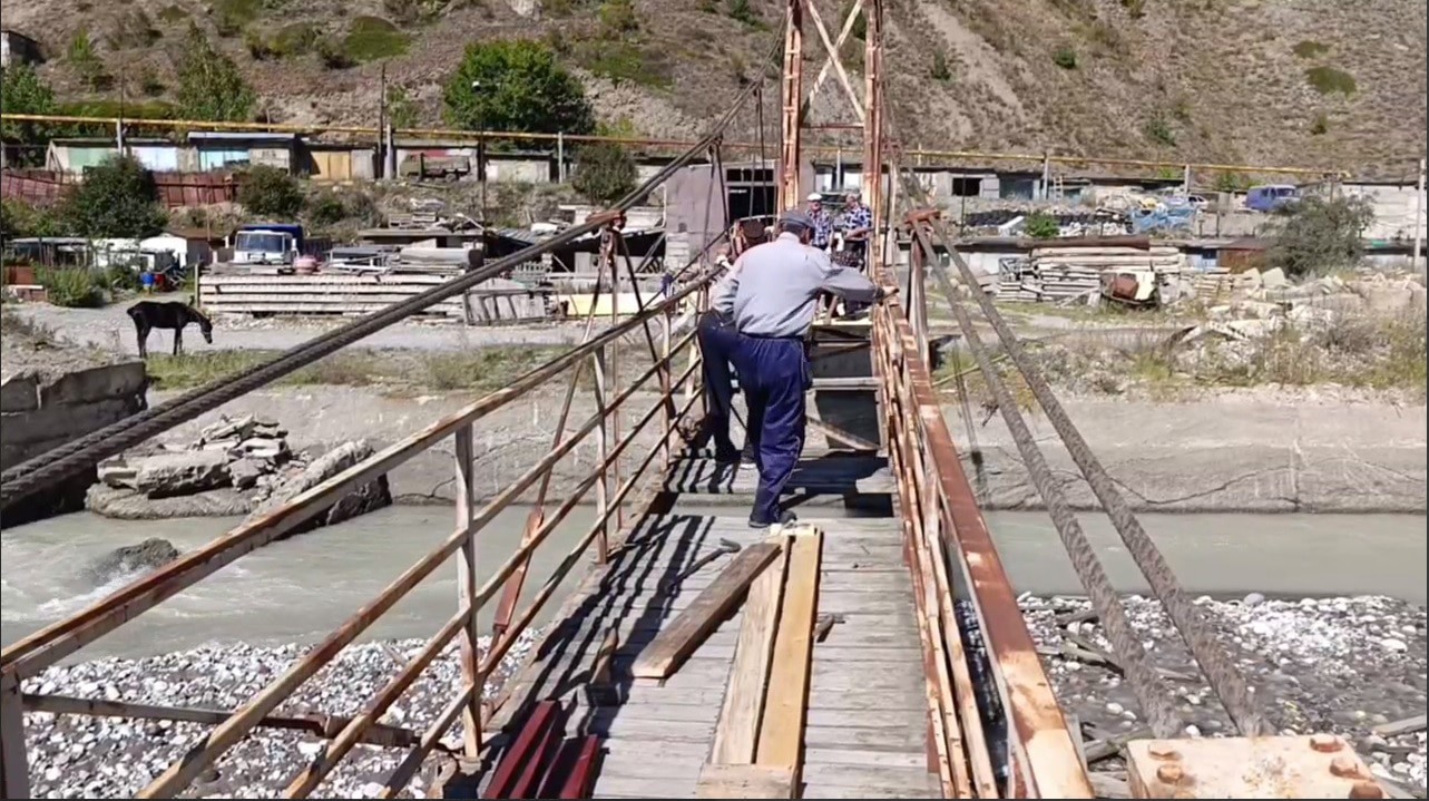 On September 13, residents of Tyrnyauz told a "Kavkazsky Uzel" correspondent about the suspension bridge across the Baksan River, which local pensioners were forced to repair themselves.