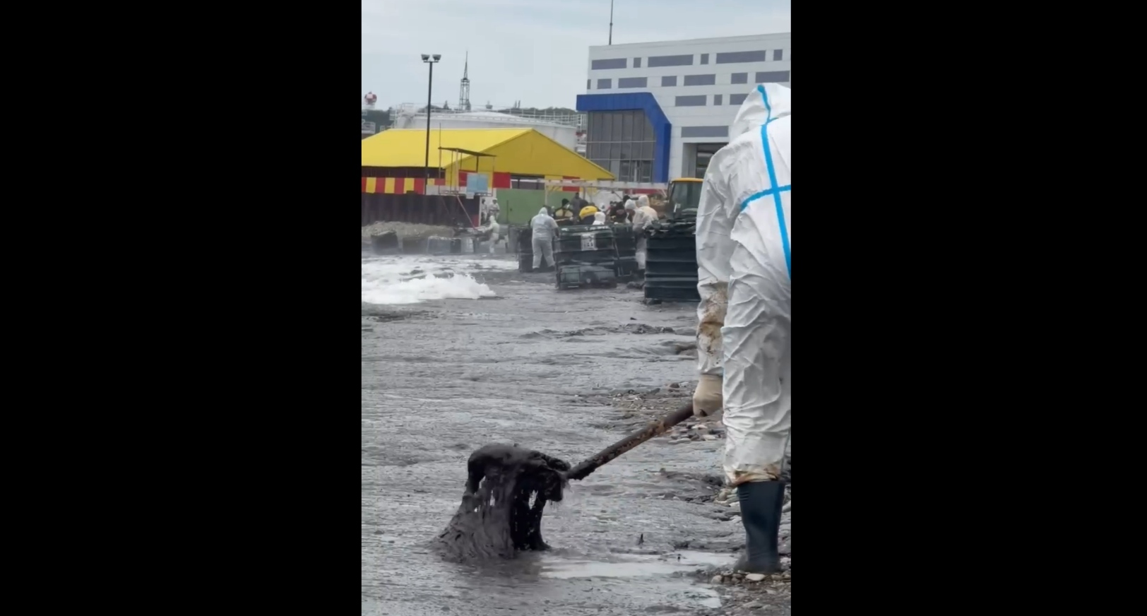 "Cleanup work on the central city beach is ongoing around the clock, but there aren't enough hands. And the sea keeps washing up fresh oil products," the author wrote.