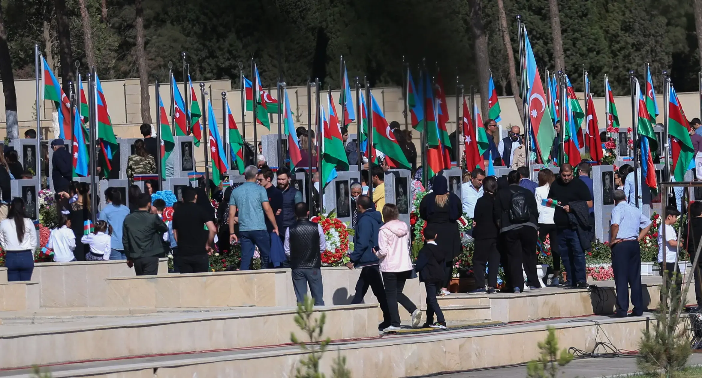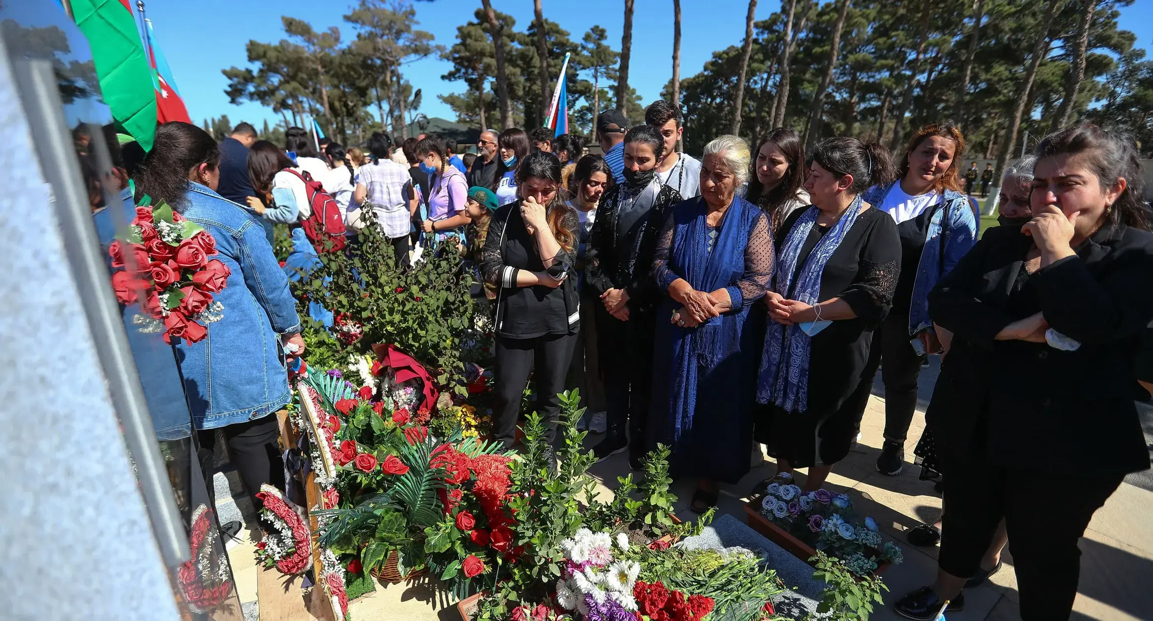On the first anniversary of the beginning of the Patriotic War of Azerbaijan, the relatives of the dead soldiers and residents of Baku came to the Alley of Honor. The memory of those who fell during the hostilities in the fall of 2020 was honored with a minute of silence and prayers. The Minister of Defense of Azerbaijan, Colonel-General Zakir Hasanov, also laid flowers at the graves of the heroes of the war. See photo report prepared by the ‘Caucasian Knot’ correspondent Aziz Karimov.