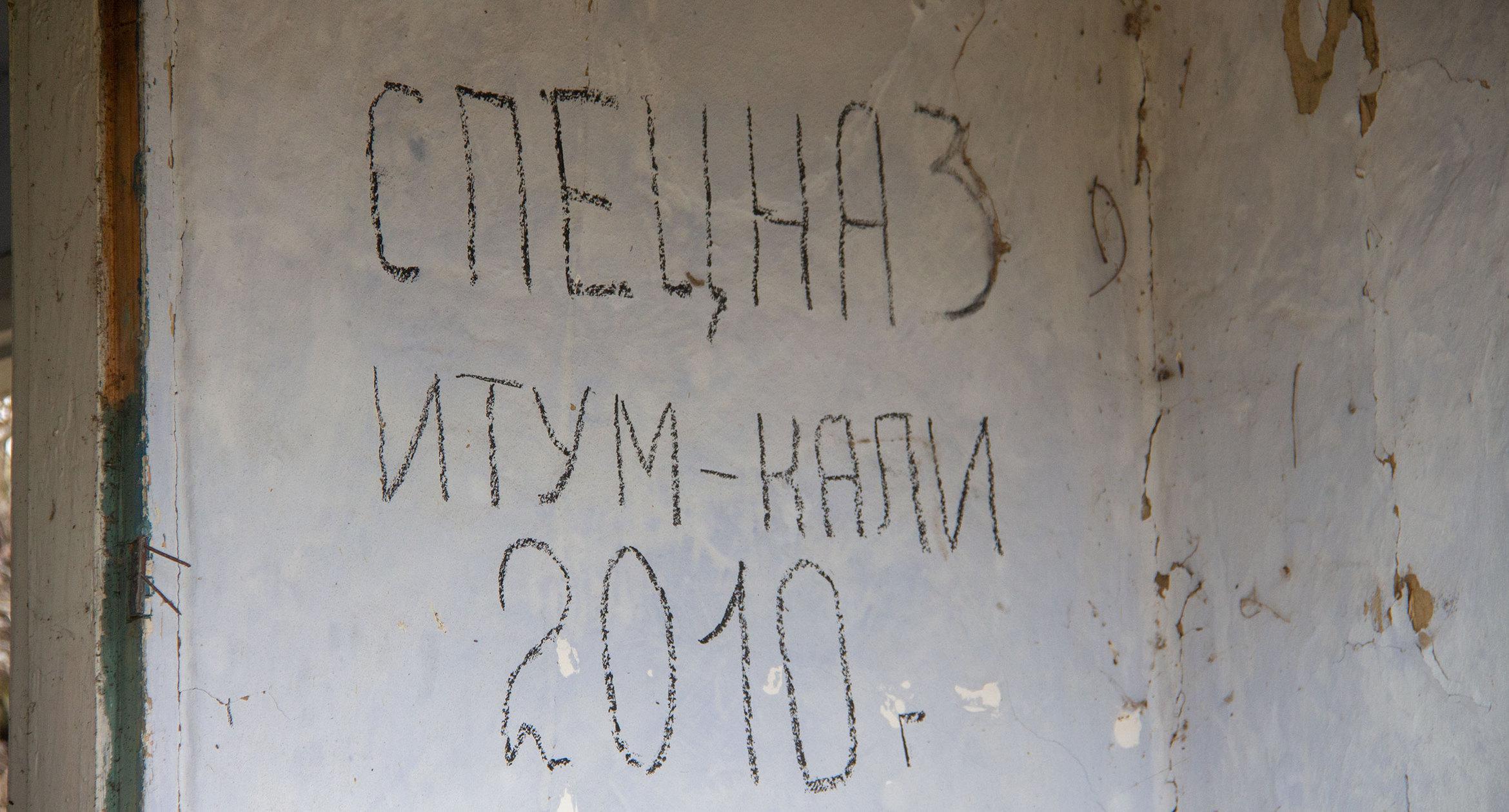 Law enforcers left the village just a few days ago. The military left numerous evidences of their stay:: on the walls inside the houses you can see inscriptions made with paint or charcoal like “Special Forces-2010, Itum-Kali”.