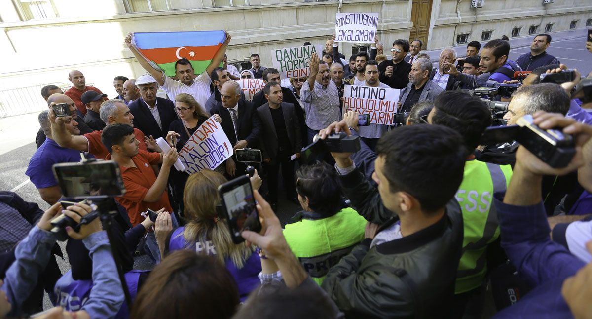 On October 8, Baku hosted a rally in defence of freedom of assembly. The police have restricted access to the venue by placing cordons in adjacent streets. Only 50 people were let to attend the rally. Groups of opposition supporters tried to break through the police cordons, some activists were detained. See photo report by Aziz Karimov.